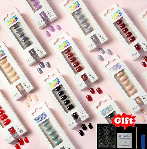 VITAGWX 24 Pcs False Nails Set Solid Color Press on Nails Short Artificial Reusable Nails Art Full Cover Stick on Nail Tips