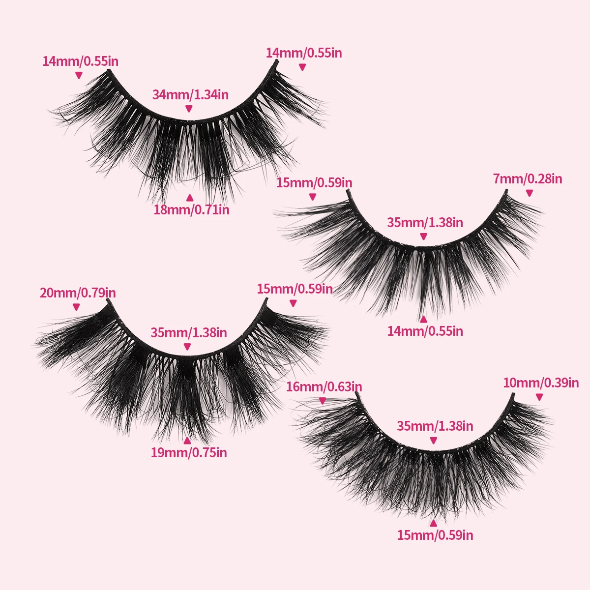 1. 4 Styles - Fashional look daily eyelashes 20 pairs 4 styles wispy lashes multipack-14-19mm long length